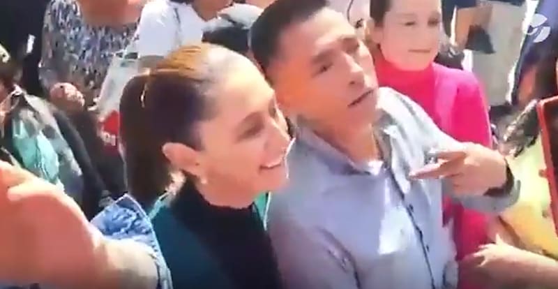 En el clip se puede ver a Sheinbaum tomándose fotografías con sus simpatizantes, cuando un desconocido se le acerca por detrás e intenta darle un beso.