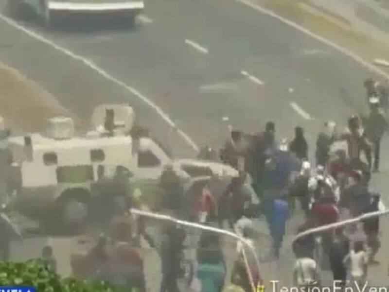 Un numeroso grupo de opositores al gobierno de Maduro fueron atropellados por una de las tanquetas antimotines que trataba de despejar la zona.
