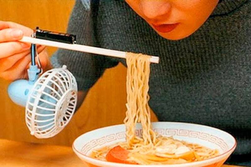 Un ventilador acoplado a los palillos para comer es la solución más rápida que han encontrado para comer sopa o fideos muy calientes. Eso sí, dependiendo de la velocidad puede que la comida llegue totalmente fría a la boca.