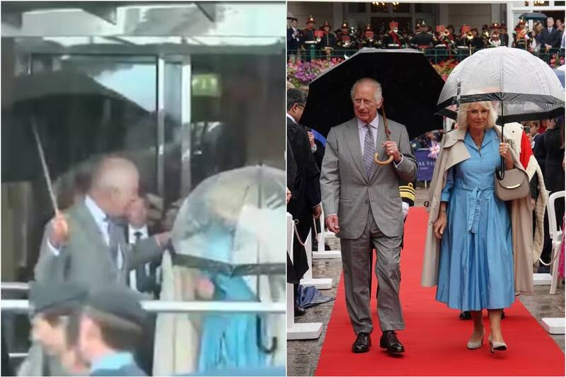 El medio español El Debate publicó un video del matrimonio que presenciaba una actividad en la calle mientras llovía torrencialmente. Carlos incluso tuvo algunas dificultades para abrir su paraguas.