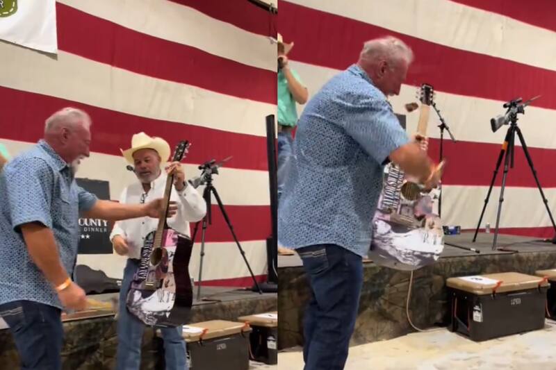 Muy compartidas en redes sociales han sido las imágenes de un hombre que compró una guitarra firmada por Taylor Swift solamente para romperla con un martillo. El instrumento fue donado para una subasta benéfica en un evento conocido como Ellis County Wild Game Dinner, que se realizó en Texas el sábado 28 de septiembre.
