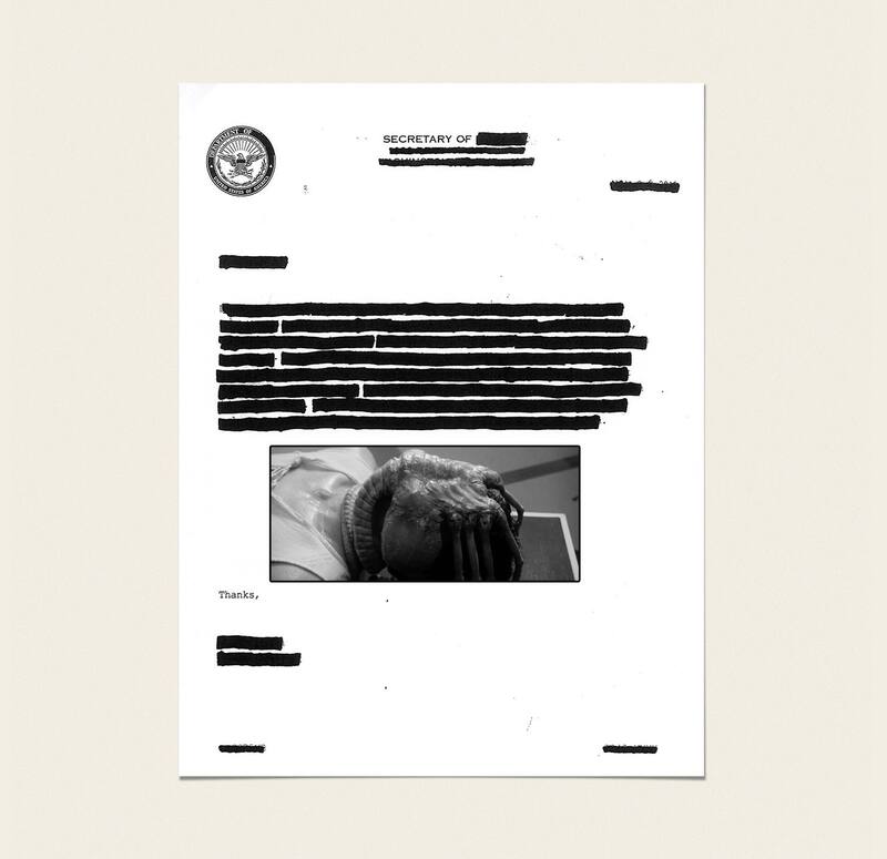 Según los mismos documentos, uno de los astronautas de la misión fue infectado. Horas después, de su cuerpo surgió una criatura desde su pecho. El registro, avalado por un general llamado Ridley Scott, sería una advertencia para que la ciudadanía tenga cuidado y mantenga la distancia.