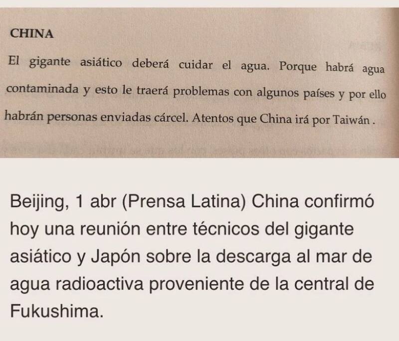 “El gigante asiático deberá cuidar el agua, porque habrá agua contaminada y esto le traerá problemas con algunos países y por ello habrán personas enviadas a la cárcel. Atentos que China irá por Taiwán”, aseguró en su libro.