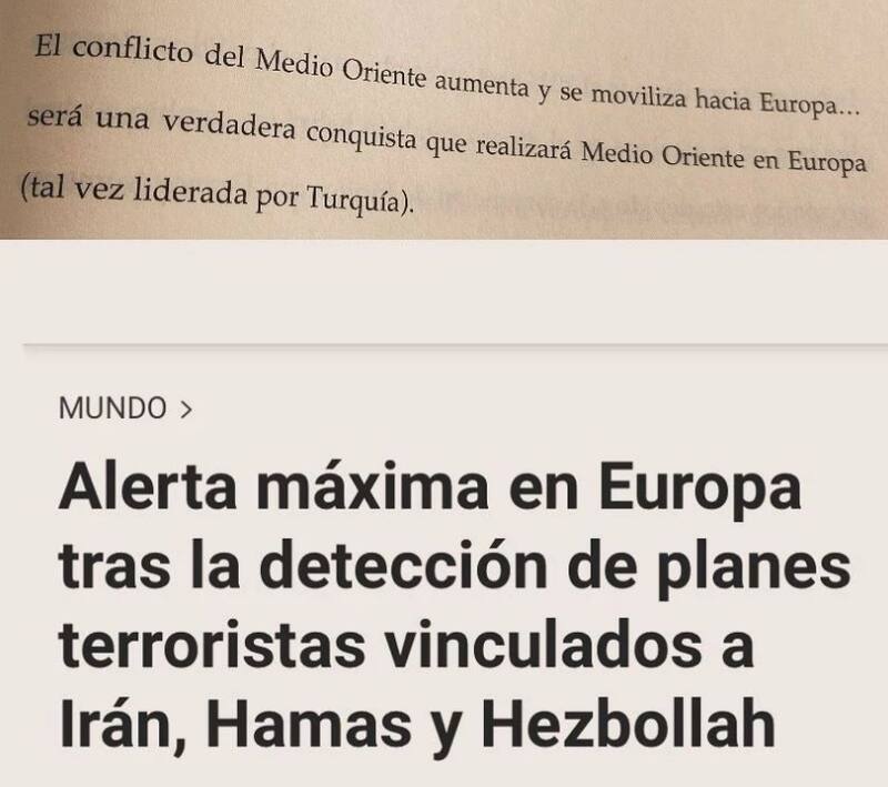 Y a modo de demostrar que su anuncio ya estaría en curso, Latife compartió un reciente titular de prensa: “Alerta máxima en Europa tras la detección de planes terroristas vinculados a Irán, Hamas y Hezbollah”.