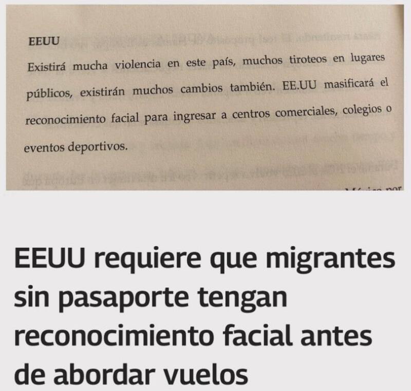 “Existirá mucha violencia en este país, muchos tiroteos en lugares públicos, existirán muchos cambios también. EE.UU. masificará el reconocimiento facial para ingresar a centros comerciales, colegios o eventos deportivos”, aseguró a fines del año pasado.