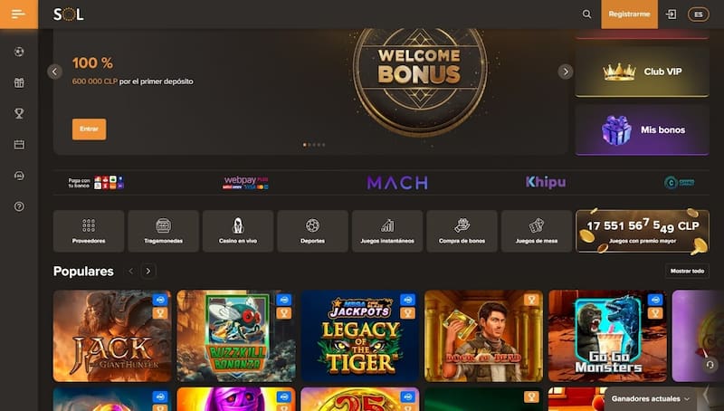 2. SOL casino – Extenso catálogo de juegos con premio mayor