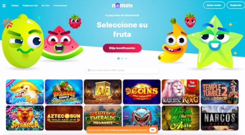 Tiene licencia vigente de Curazao, un aspecto verificado por nuestros especialistas, es que aporta jugadas protegidas y transparentes a través de términos de uso claros. En Nomini Casino encontramos la disponibilidad de más de 4.000 juegos de azar, los cuales, se pueden filtrar fácilmente a través de un panel de búsqueda bastante intuitivo. Incorporan proveedores como Play’n GO, Evolution Gaming o Pragmatic Play, garantizando una accesibilidad óptima a diferentes temáticas, diseños e interfaz de juego, que se ajustan a las exigencias de los usuarios.