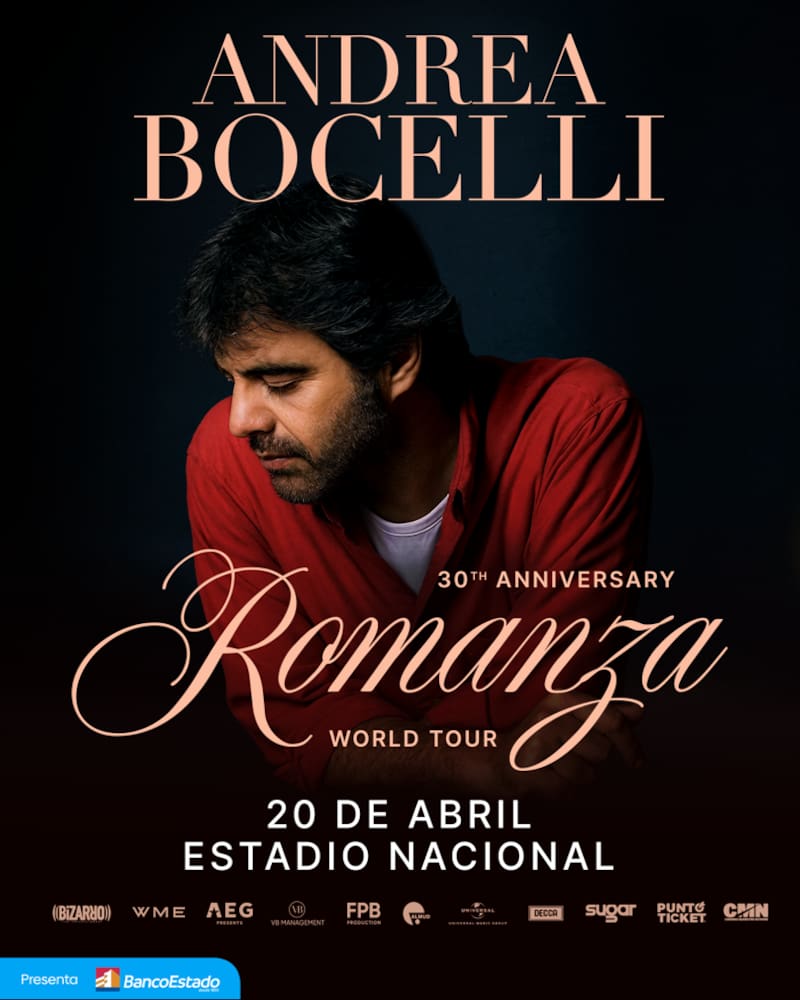 Andrea Bocelli regresará a Chile con su “Romanza World Tour 2026” este 20 de abril en el Estadio Nacional. El recinto más grande que existe en el país y donde mostrará todo su amplio repertorio lleno de sorpresas y momentos inolvidables.