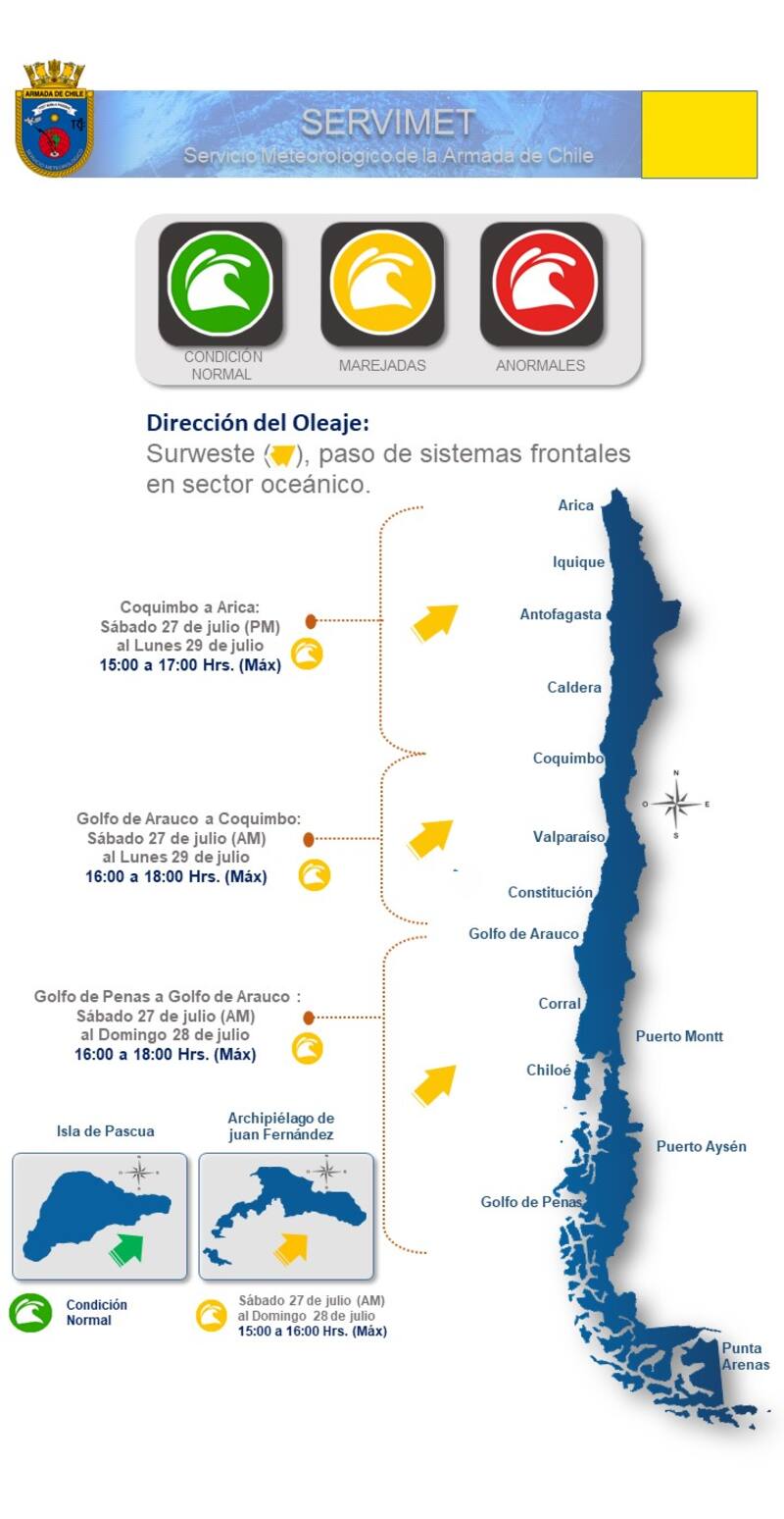 - Golfo de Penas hasta Coquimbo: Sábado 27 de julio (AM).