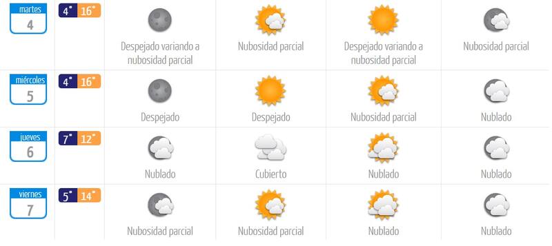 Durante el transcurso de la semana, el termómetro irá descendiendo paulatinamente. De hecho, para el jueves 6 de julio se esperan cielos nublados y una máxima de 12 grados.