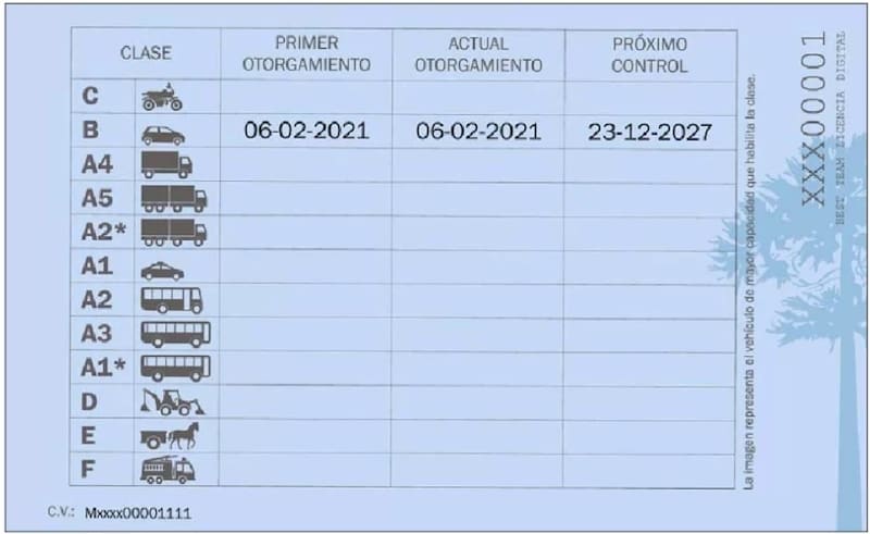 Por el otro lado, el documento tendrá una tabla con todas las licencias de conducir que tiene la persona. Estas están acompañadas de la fecha del primer otorgamiento, el actual y del próximo control.