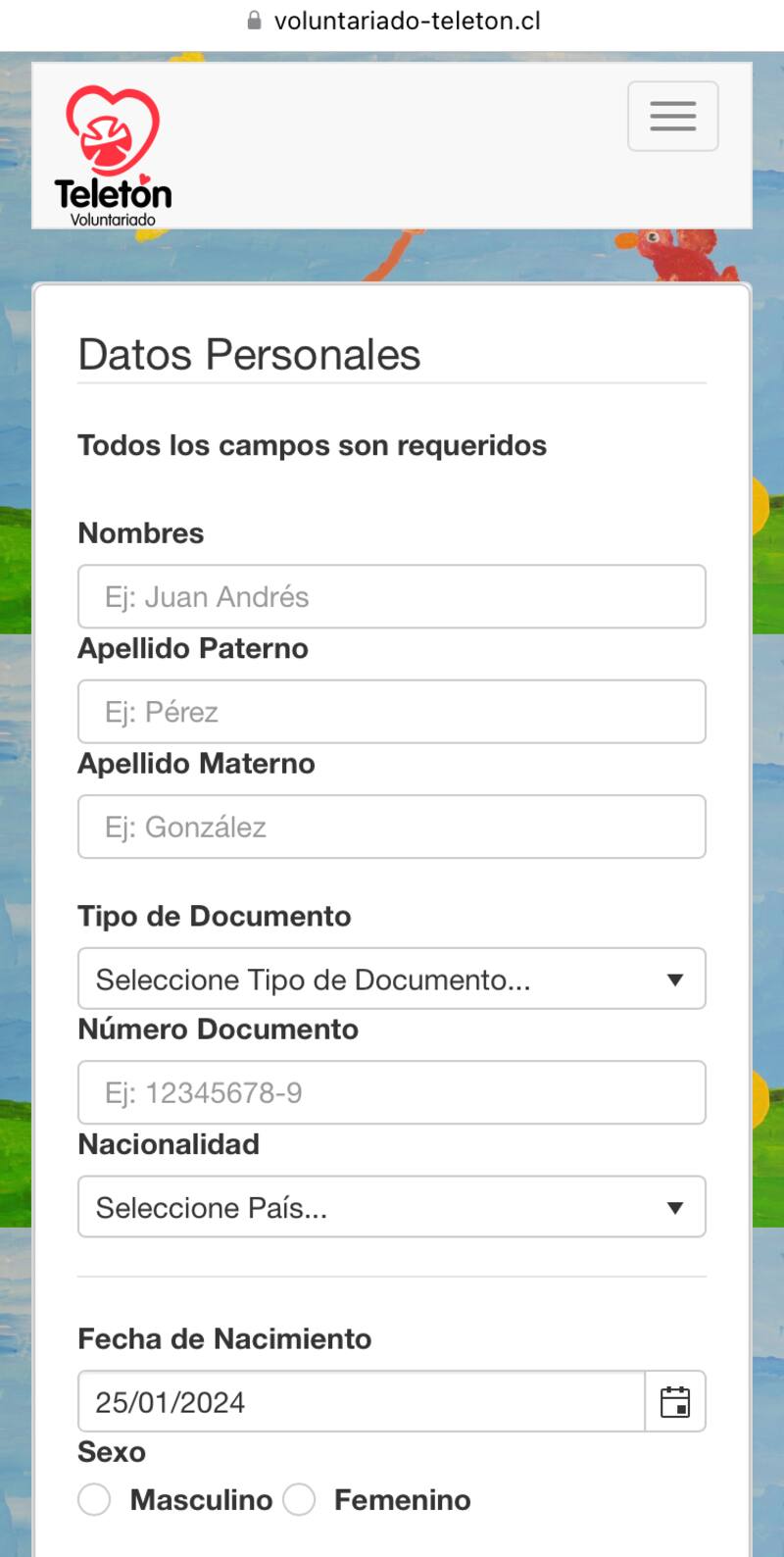 - Completar el formulario de la página de Teletón.
