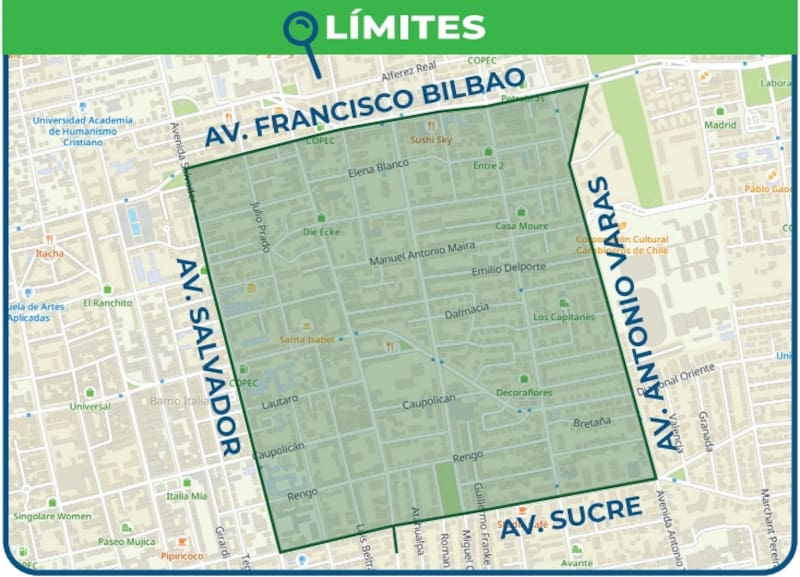 La empresa señaló que son dos comunas afectadas, las cuales son Providencia y Ñuñoa, en el siguiente perímetro: