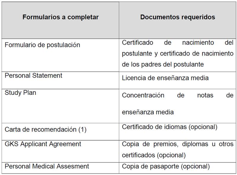 - El postulante debe tener nacionalidad chilena y sus padres no deben tener nacionalidad coreana.