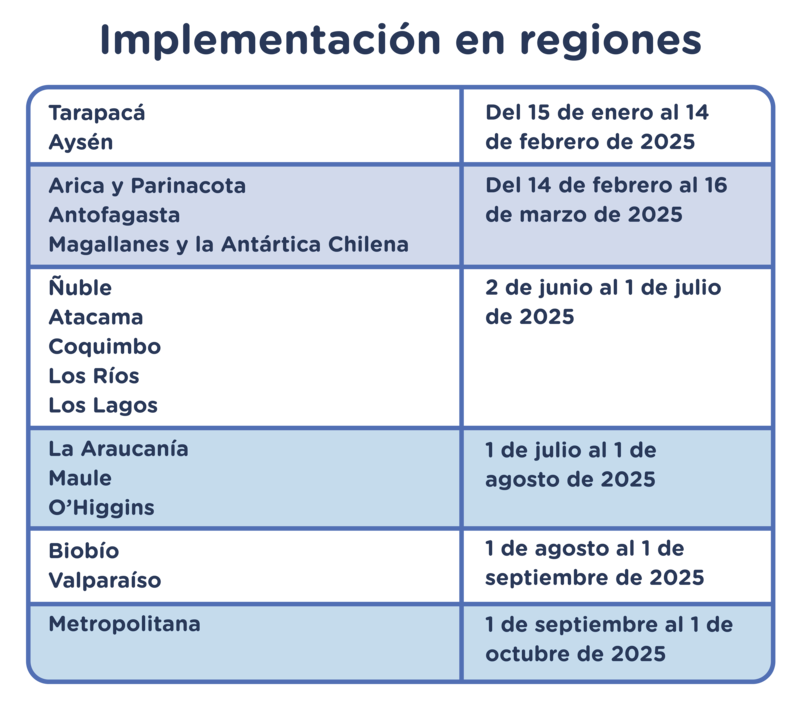 El resto de las regiones se integrará progresivamente según el siguiente calendario: