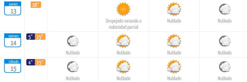 Ya para el viernes 14 de julio, el termómetro seguirá descendiendo, hasta llegar a una mínima de 5° y una máxima de 15°.
