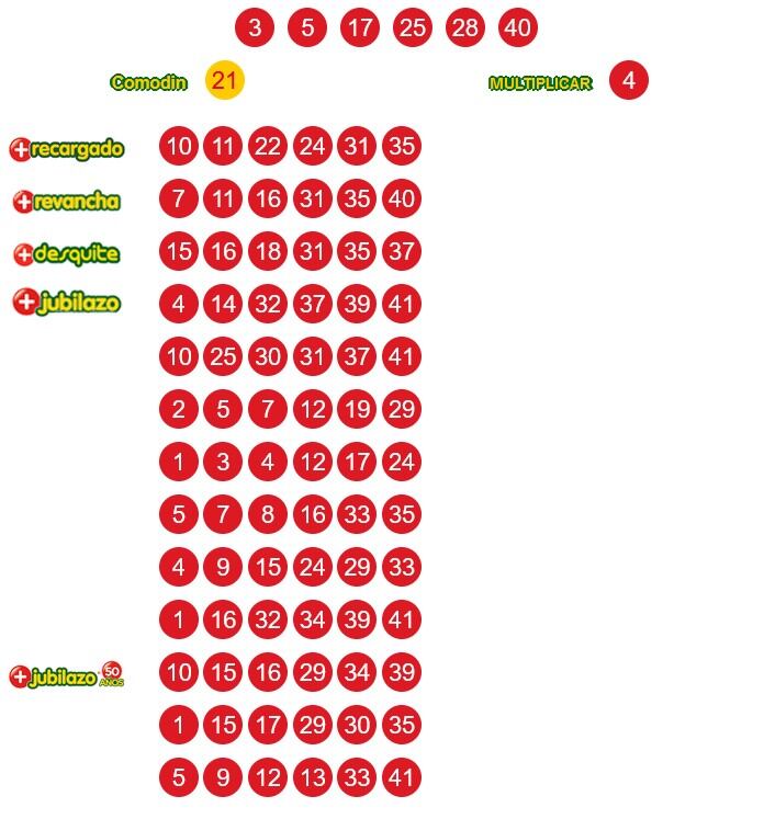 3 -5 - 17 - 25 - 28 - 40 - Comodín 21
