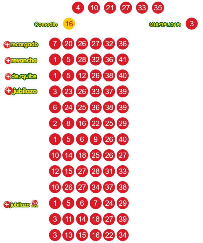 4 -10 - 21 - 27 - 33 - 35 - Comodín 16