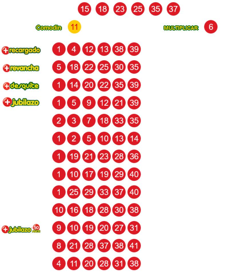 3 -4 - 21 - 23 - 32 - 35 - Comodín 11