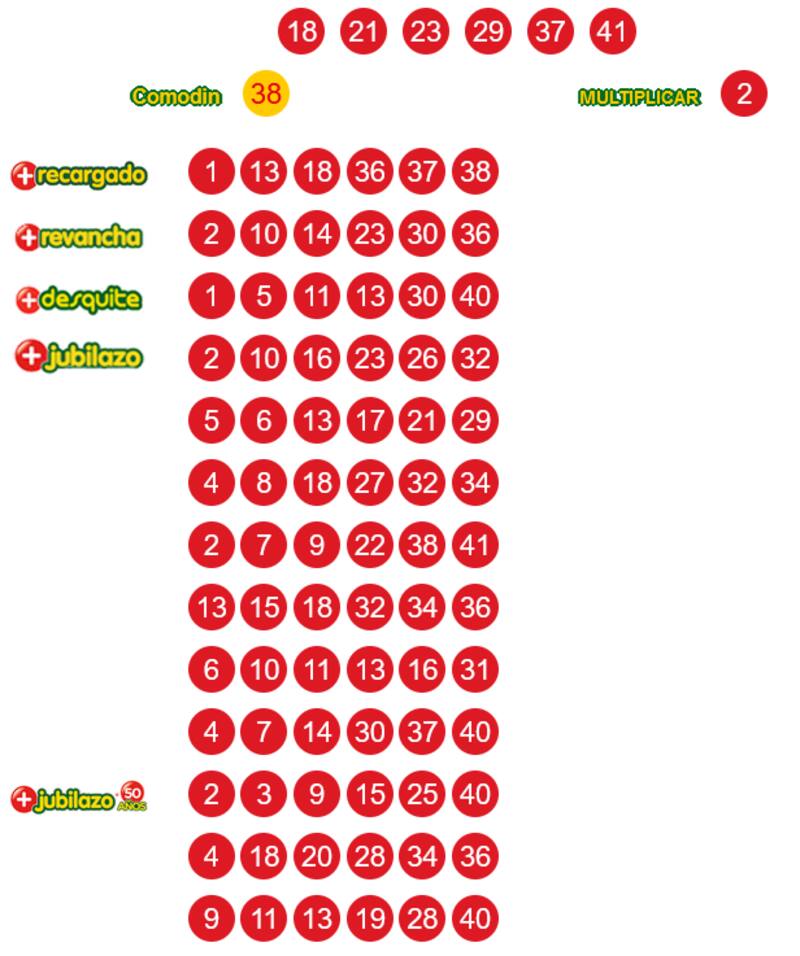 18 - 21 - 23 - 29 - 37 - 41 - Comodín 38