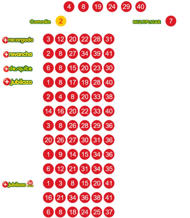 4 - 8 - 19 - 24 - 29 - 40 - Comodín 2