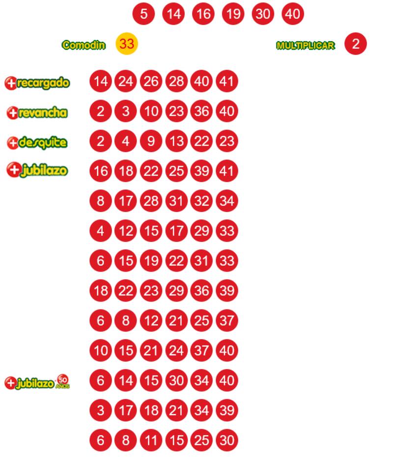 5 - 14 - 16 - 19 - 30 - 40 - Comodín 33