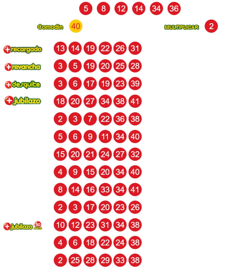 5 - 8 - 12 - 14 - 34 - 36 - Comodín 40