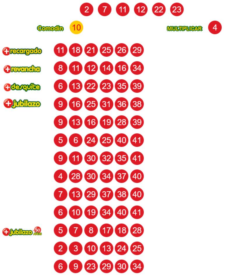 2 - 7 - 11 - 12 - 22 - 23 - Comodín 10