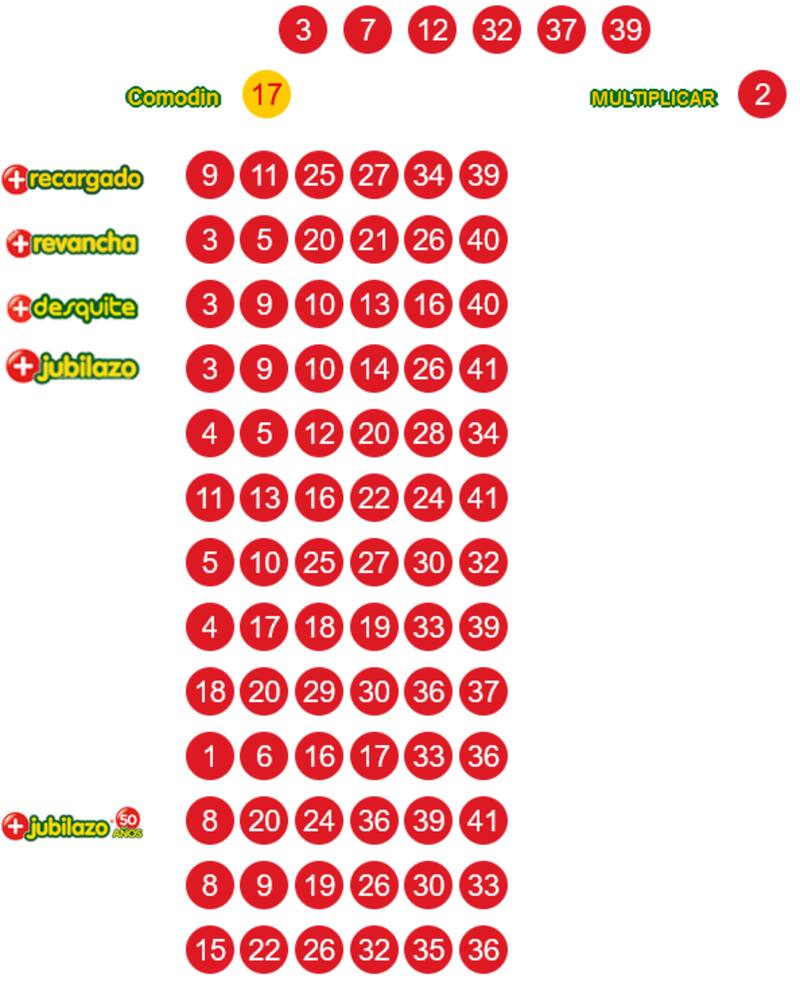 3 - 7 - 12 - 32 - 37 - 39 - Comodín 17