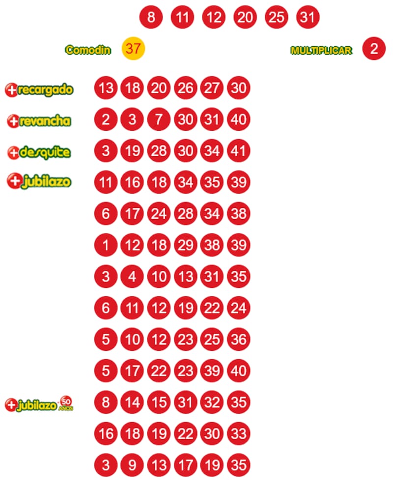 8 - 11 - 12 - 20 - 25 - 31 - Comodín 37