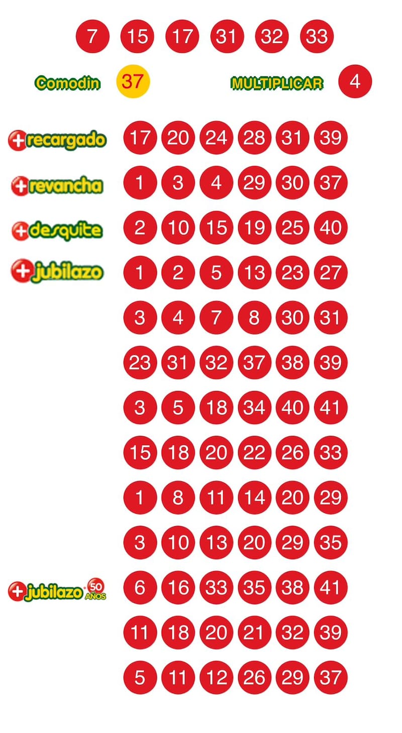 7 - 15 - 17 - 31 - 32 - 33 - Comodín 37