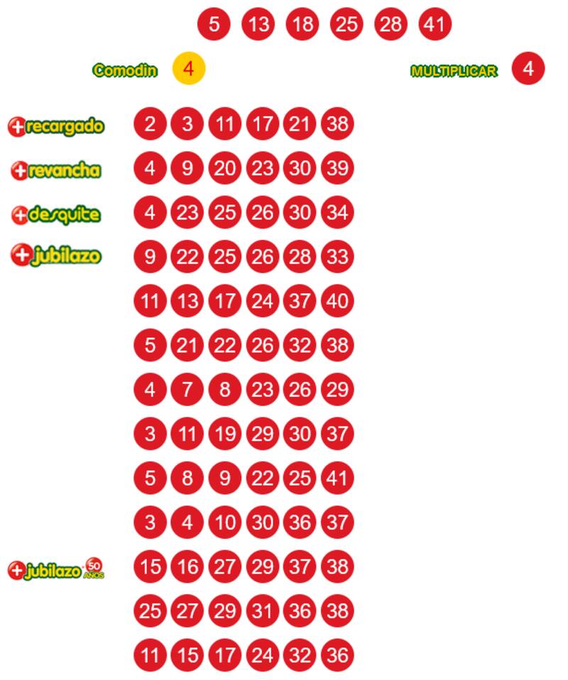 5 - 13 - 18 - 25 - 28 - 41 - Comodín 4