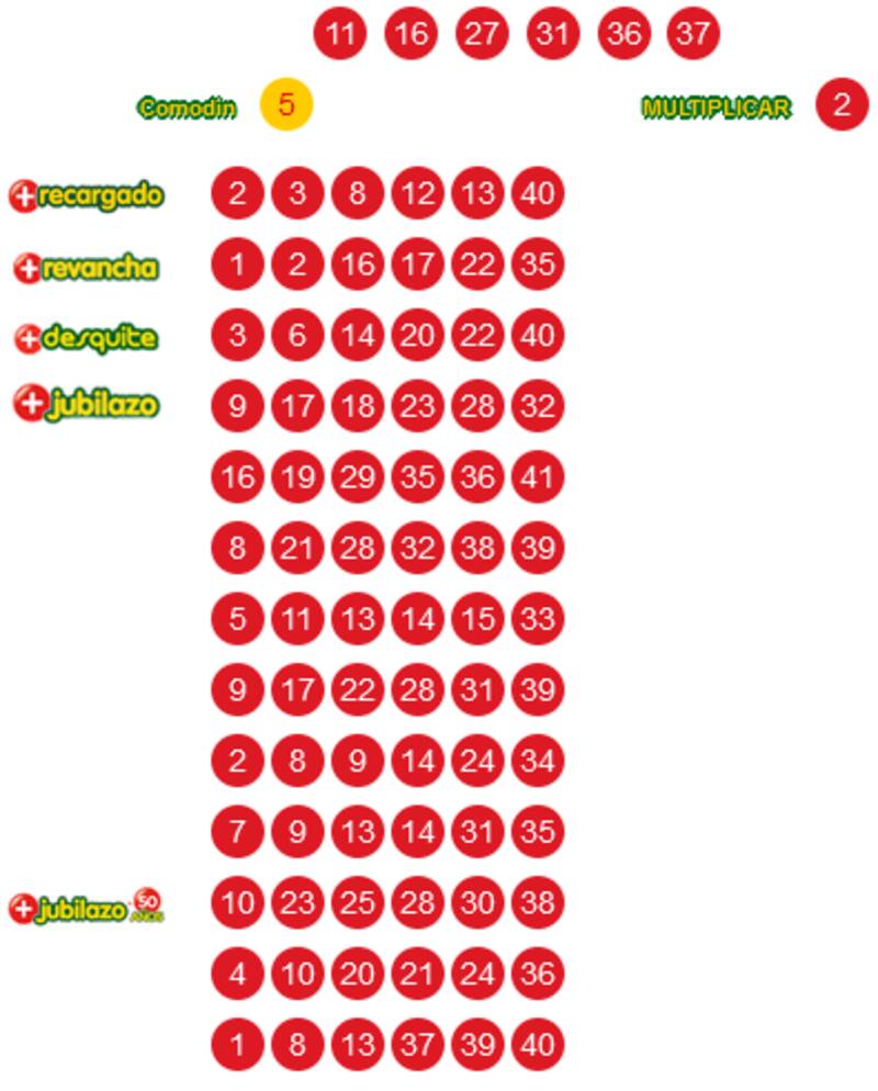 11 - 16 - 27 - 31 - 36 - 37 - Comodín 5