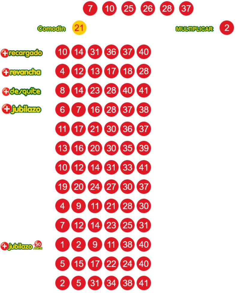 7 - 10 - 25 - 26 - 28 - 37 - Comodín 21