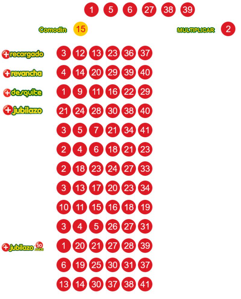 1 - 5 - 6 - 27 - 38 - 39 - Comodín 15