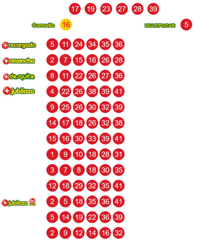 17 - 19 - 23 - 27 - 28 - 39 - Comodín 16