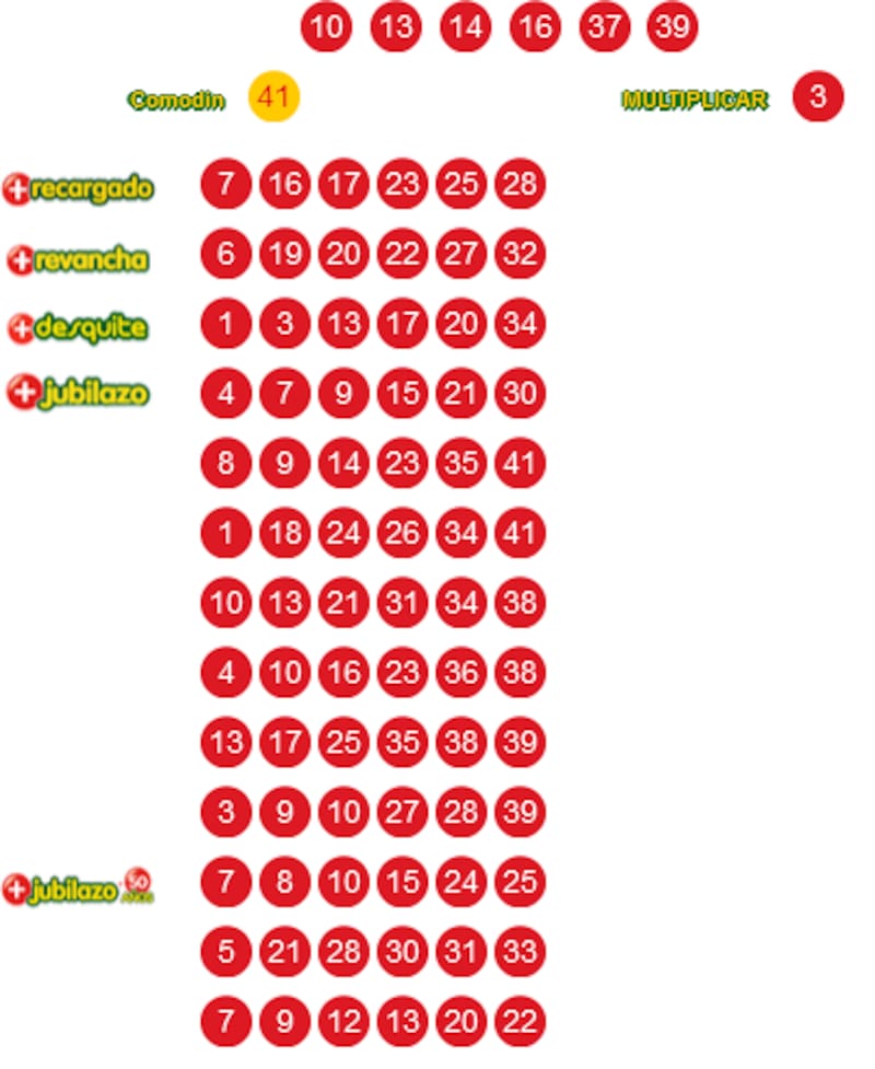 10 - 13 - 14 - 16 - 37 - 39 - Comodín 41