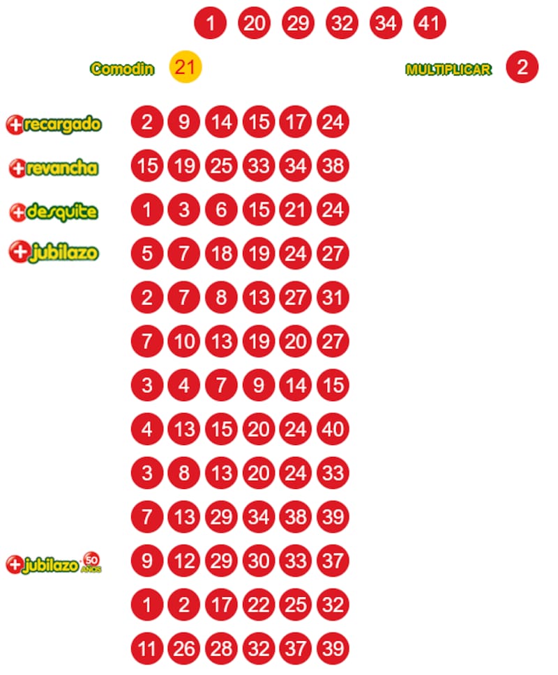 1 - 20 - 29 - 32 - 34 - 41 - Comodín 21