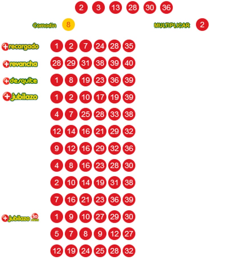 2 - 3 - 13 - 28 - 30 - 36 - Comodín 8