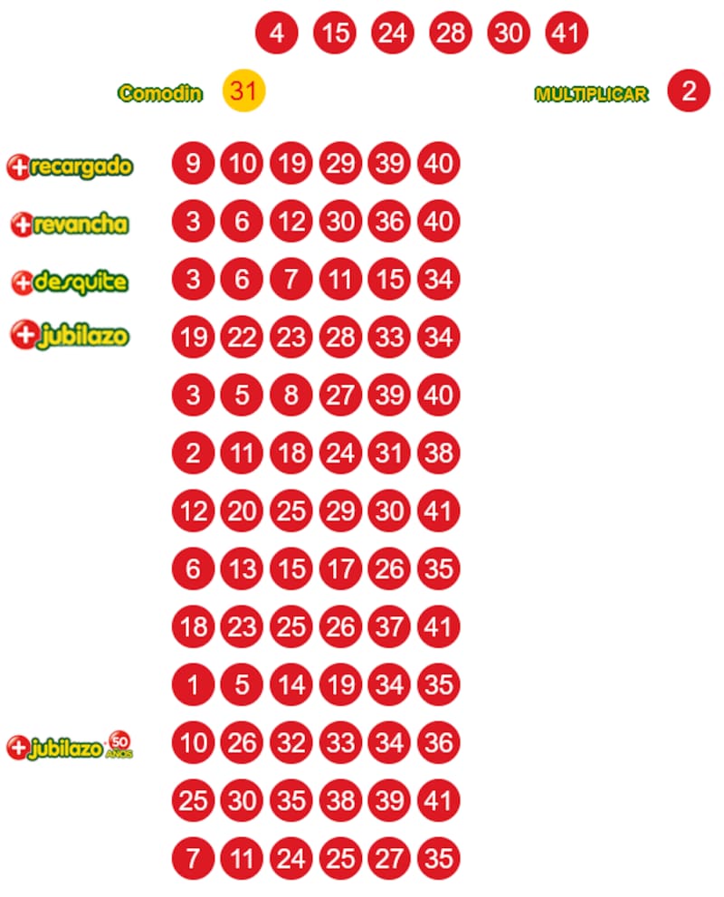4 - 15 - 24 - 28 - 30 - 41 - Comodín 31
