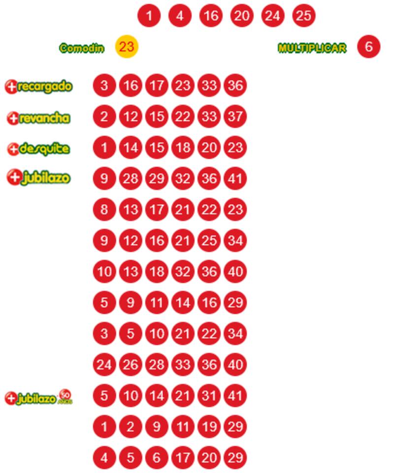 1 - 4 - 16 - 20 - 24 - 25 - Comodín 23