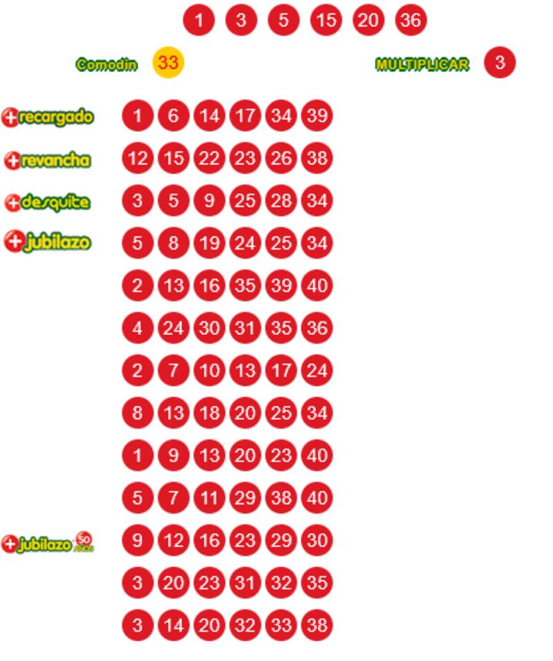 1 - 3 - 5 - 15 - 20 - 36 - Comodín 33