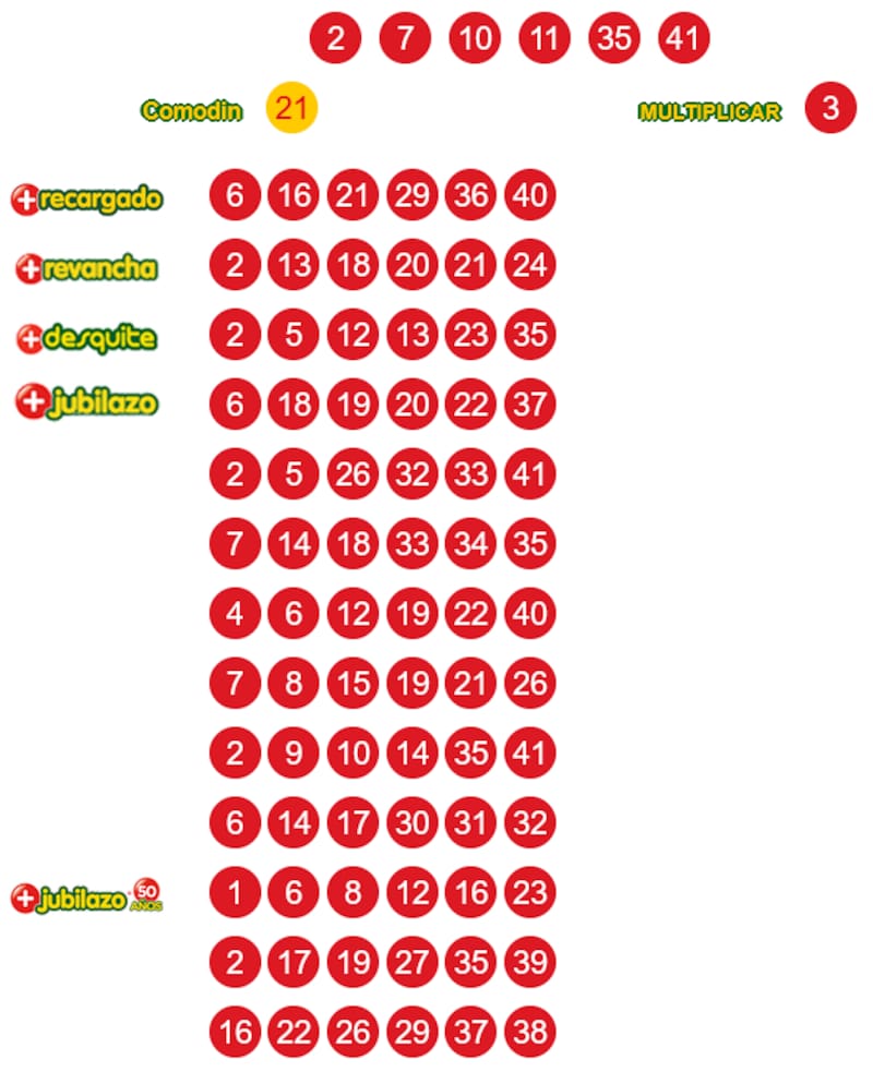 2 - 7 - 10 - 11 - 35 - 41 - Comodín 21