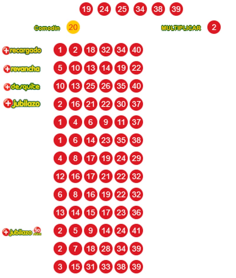 19 - 24 - 25 - 34 - 38 - 39 - Comodín 20