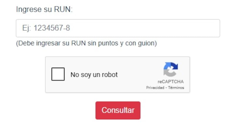 Al entrar a la plataforma, debes ingresar tu RUT sin puntos y con guión, junto con verificar el captcha.