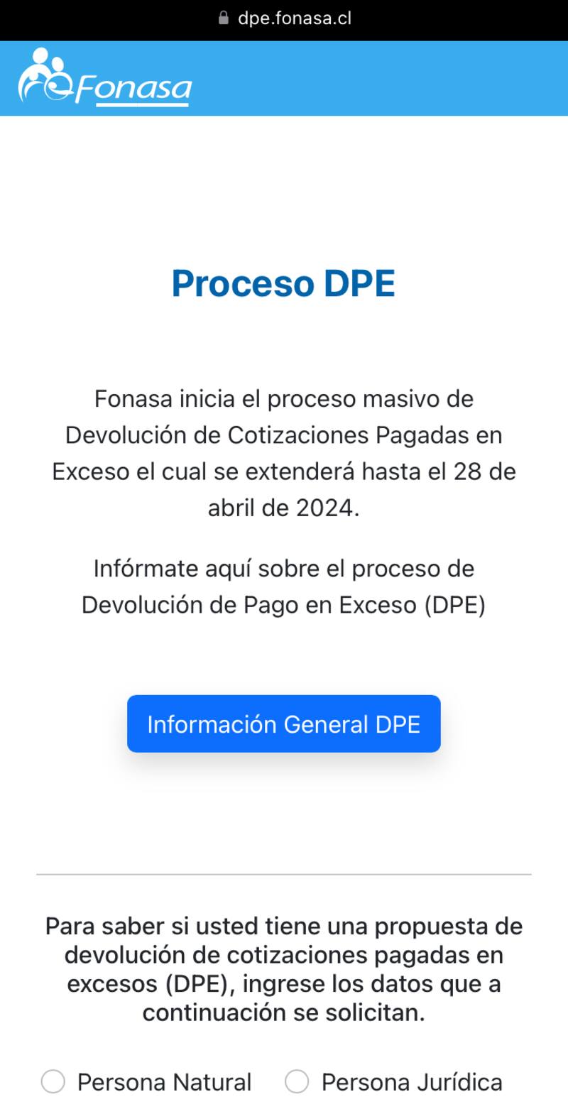 - Ingresar al sitio de devolución de pagos en exceso de Fonasa.