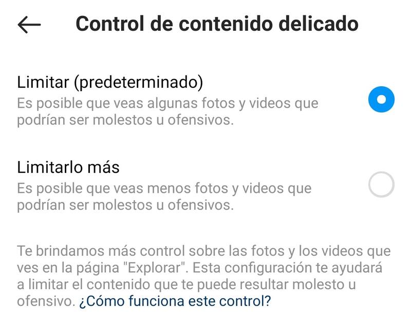 La otra opción es "Limitarlo más". En esta "es posible que veas menos fotos y videos que podrían ser molestos u ofensivos".