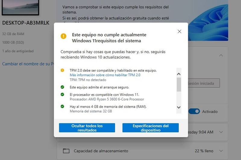Lo anterior finalmente se concretó, ya que la compañía presentó la nueva versión de la aplicación que da cuenta de si tu equipo cumple con todos los requisitos, incluyendo la opción de incluir un chip TPM.