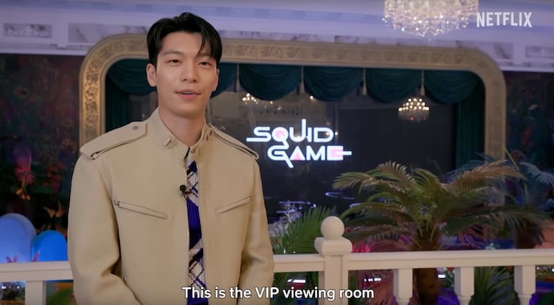 El actor comienza el tour en el área VIP, ese salón lujoso desde donde los enigmáticos millonarios observan cómo se desarrolla el mortal juego.