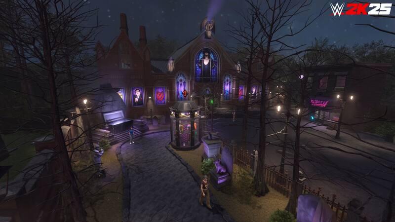 La Isla es, efectivamente, un mapa estilo mundo abierto, donde los jugadores podrán recorrer distintos distritos de un lugar inspirado en diferentes personajes y mitología de la WWE. Tenemos el cuartel de los héroes, el arcade del mañana, el templo de los ancestros y, por supuesto, la tierra de los Muertos, cada área representando a diferentes luchadores como John Cena, Cody Rhodes, Asuka, Rey Mysterio y The Undertaker.